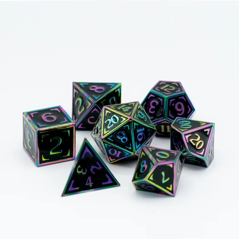 Add a little drama to every roll with a set of solid metal dice. They clink, they gleam, and they make even a critical fail sound epic.