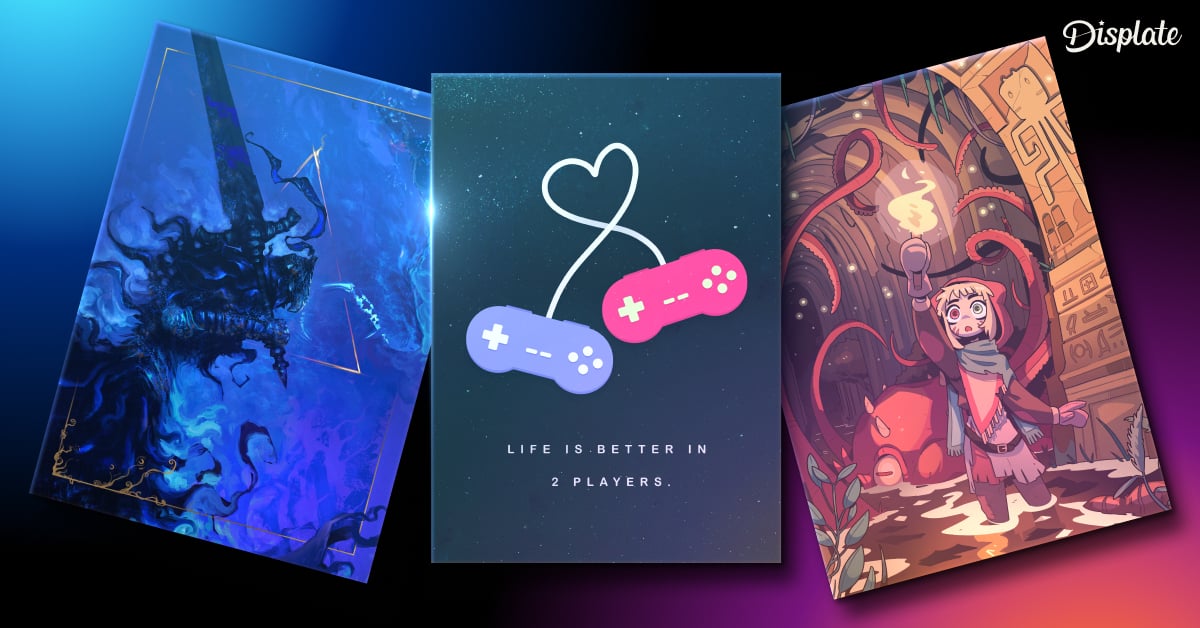 Color-coding keeps individuality alive. Try complementary tones like purple and teal or red and gold. Matching Displates help tie each side together while still letting personalities shine.