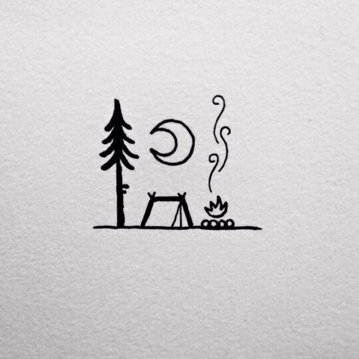 Here’s a cool little tent and tree drawn with easy lines. You could easily draw an entire campsite with this style by breaking down the elements into basic shapes. If you think this drawing is too easy, perhaps you can add a moon to it. Sketching and doodling can be a freeform practice. This means you have the freedom to draw whatever comes to mind, this makes the process more fun.
