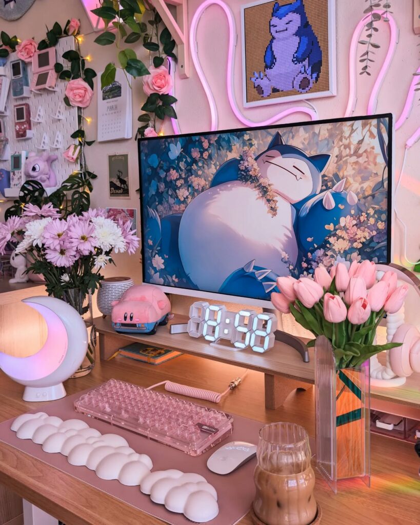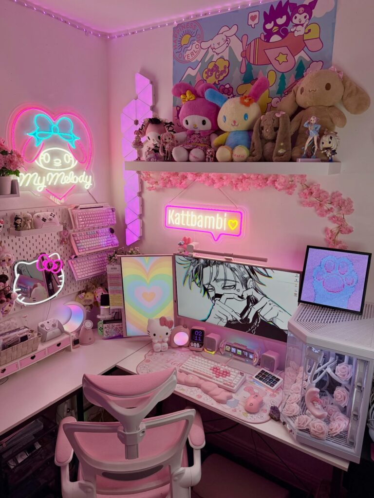 Anime, nostalgia, and character inspiration take center stage. These setups celebrate pink in its most fun and expressive forms.
