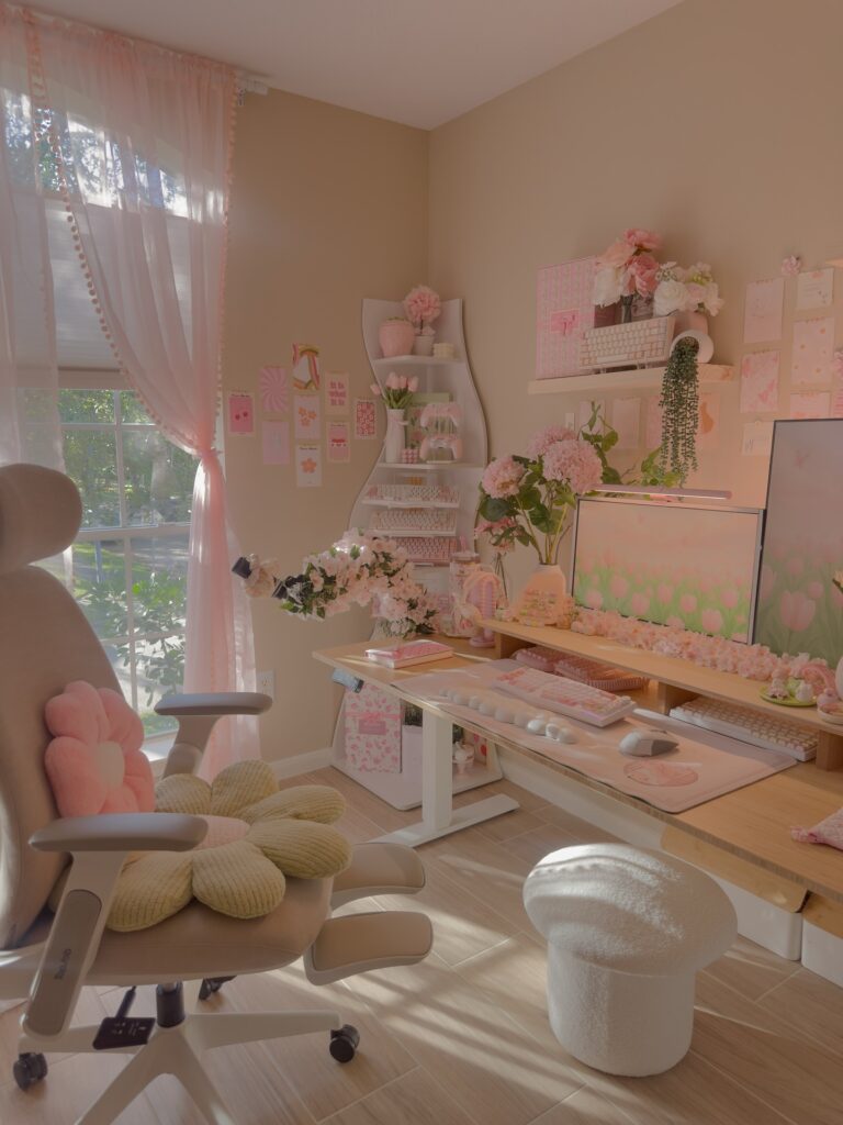 Gentle lighting, plush textures, and delicate hues make these setups feel warm, calming, and irresistibly cute, perfect for cozy late-night sessions or streaming in style.